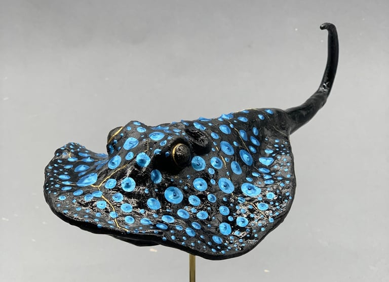 Je sculpte des animaux, j’ai une petite préférence pour ceux aquatiques ou qui vivent près de l'eau, même si je ne me limite pas qu'à eux.